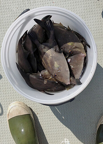 この日の釣果はカワハギだけで83匹。