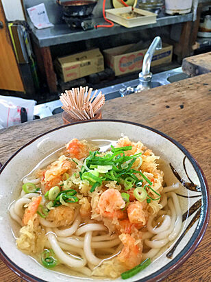 その時に食べたのは腰抜けうどんのエビ載せ。