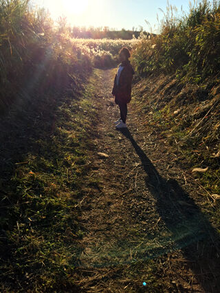 秋のきれいなアンバーの色と長い影。