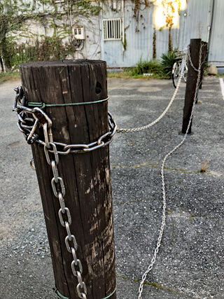 アーケードから道を逸れるとかつて家屋だったであろう場所が駐車場となっていた。