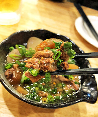 おつまみに牛筋煮込みをいただきまして。
